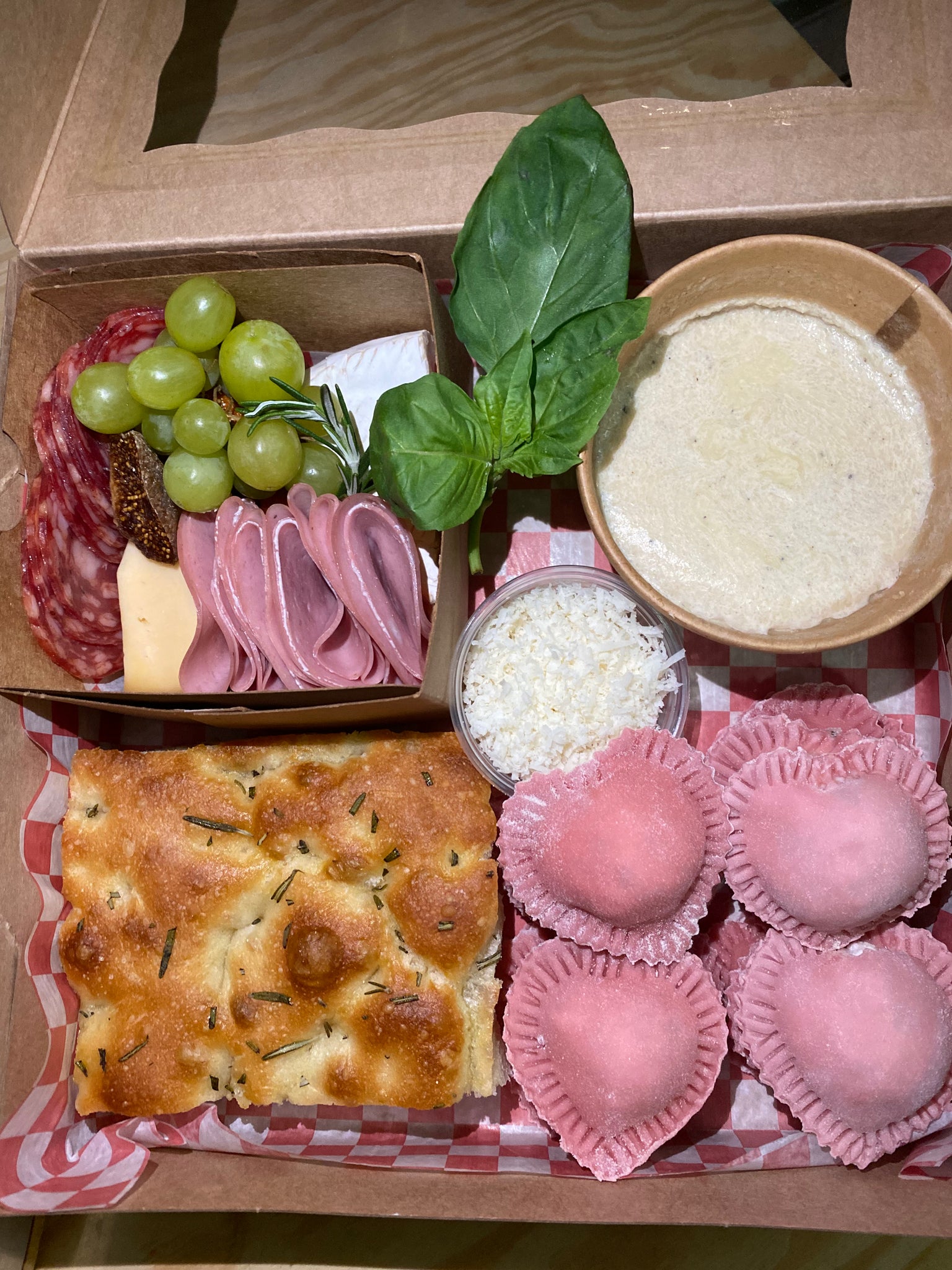 - hand made pink ravioli hearts filled with ricotta, basil, honey and lemon zest (18 ravioli)